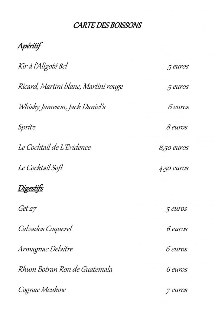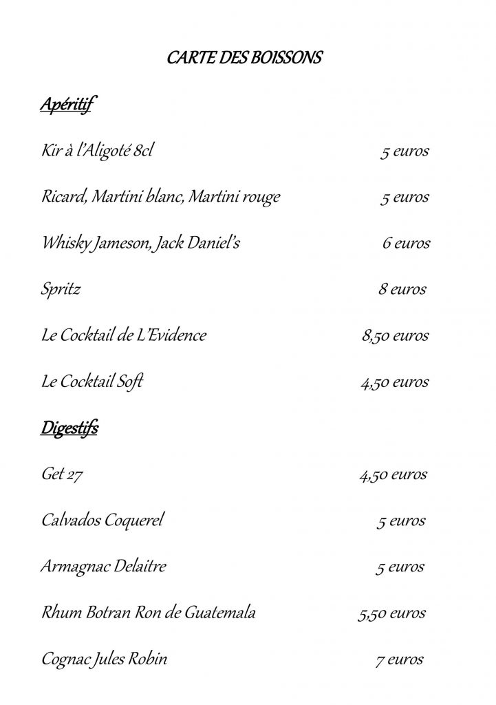 CARTE DES BOISSONS