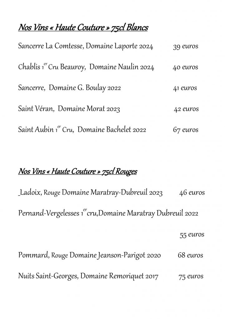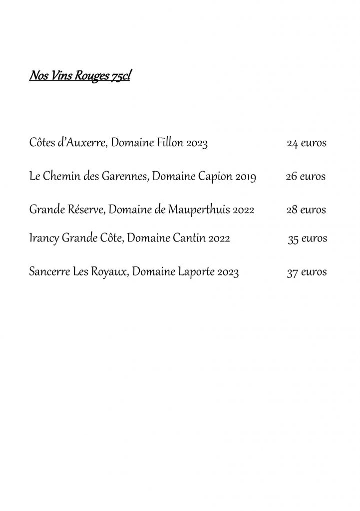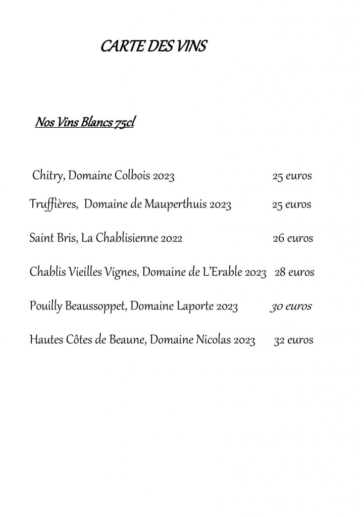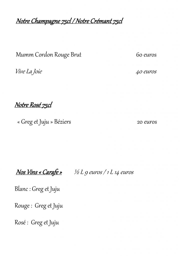 CARTE DES VINS / BOISSONS